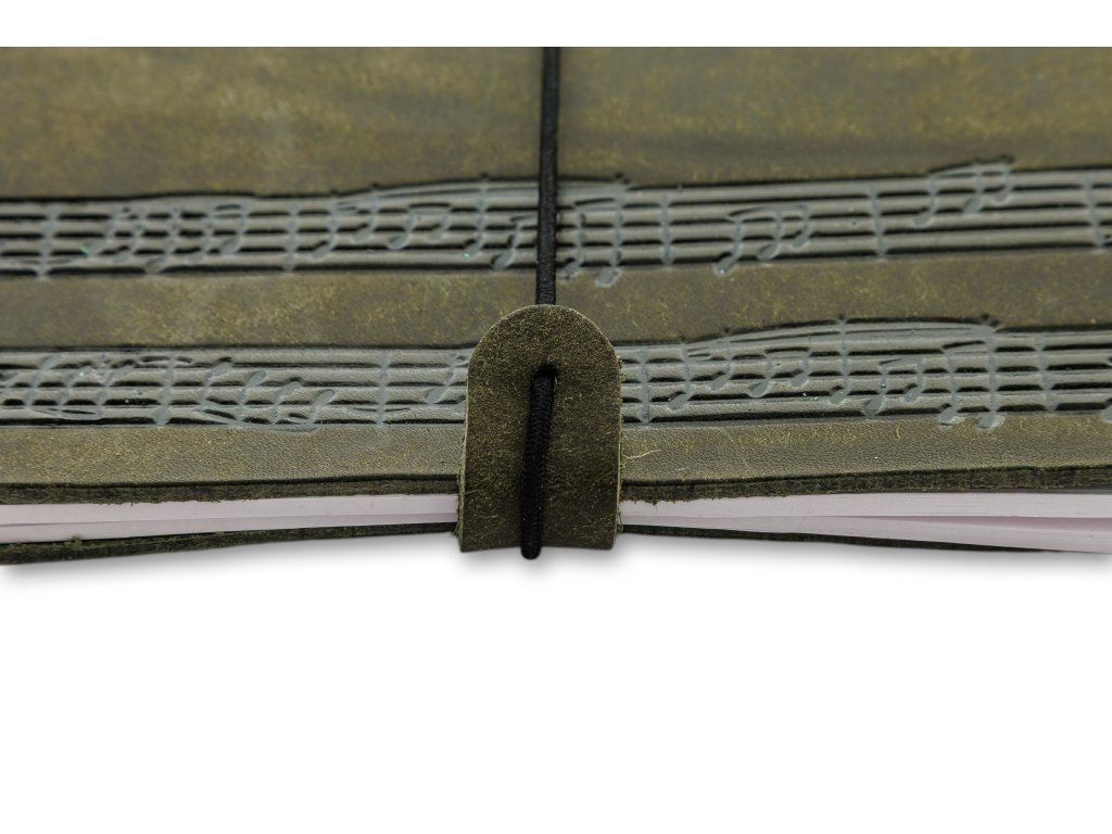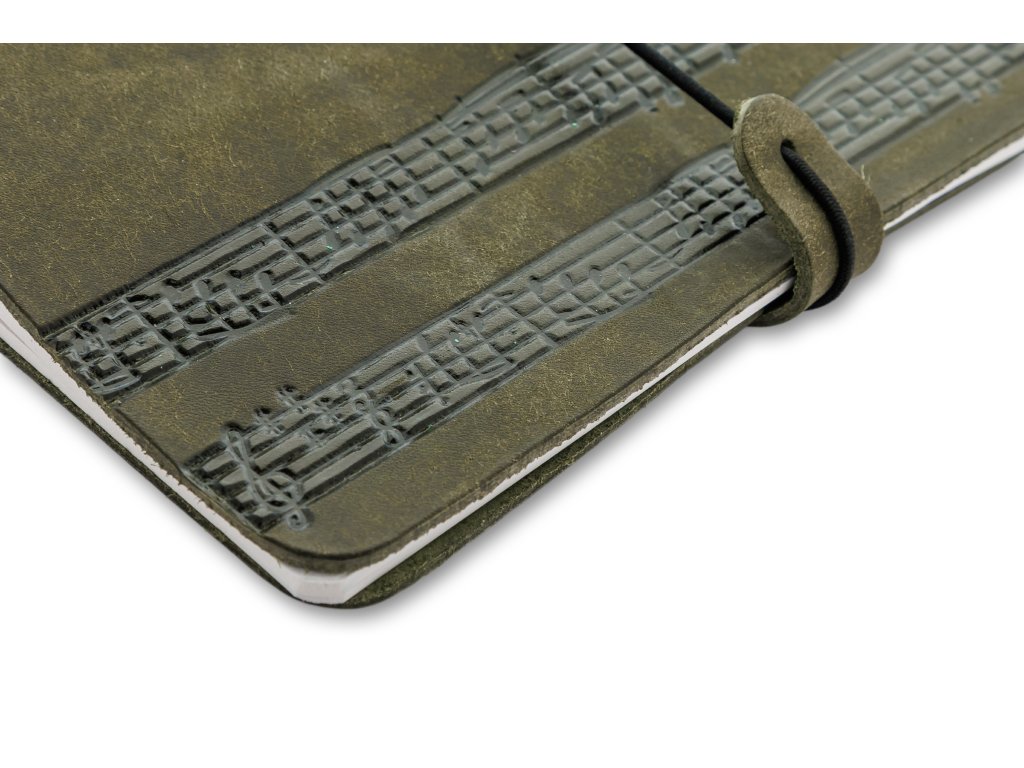 Uvnitř se nachází čistý nelinkovaný sešit formátu A5, který můžete po dopsání snadno vyměnit za nový – obal vám tak bude věrně sloužit řadu let. Praktické zavírání na pružnou gumičku zajistí, že všechny vaše zápisky i hudební nápady zůstanou bezpečně uložené.