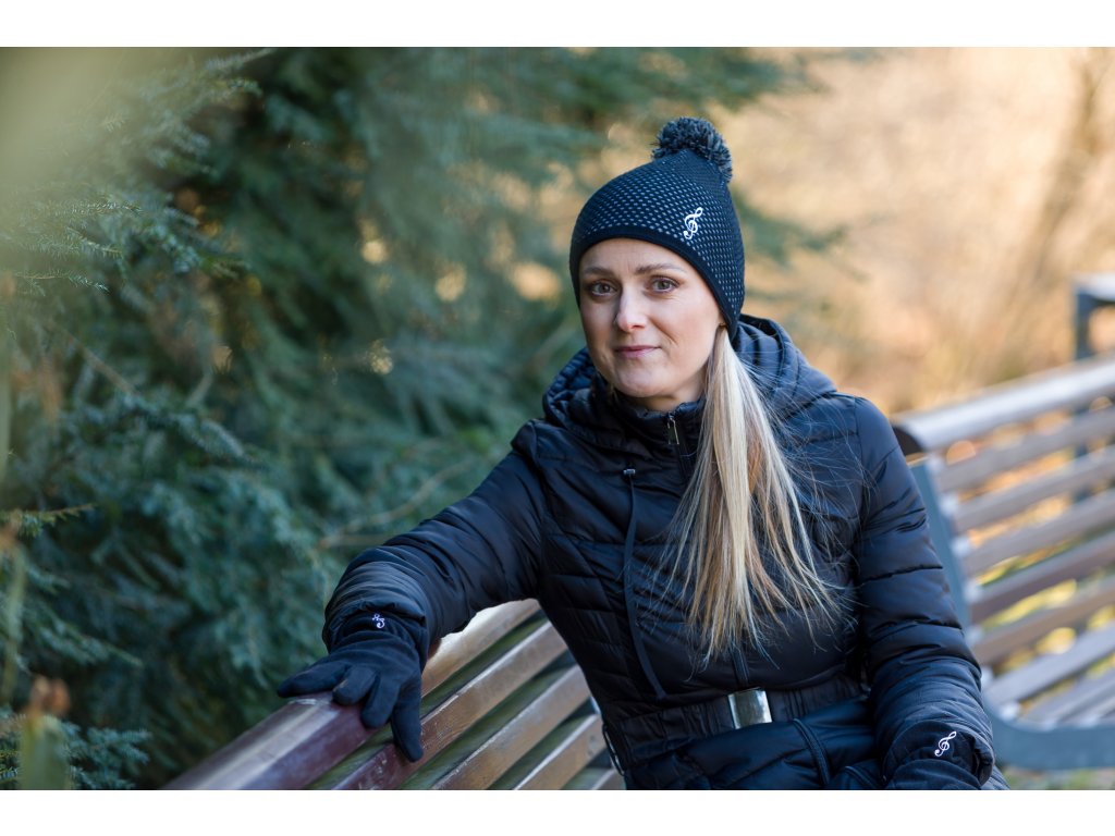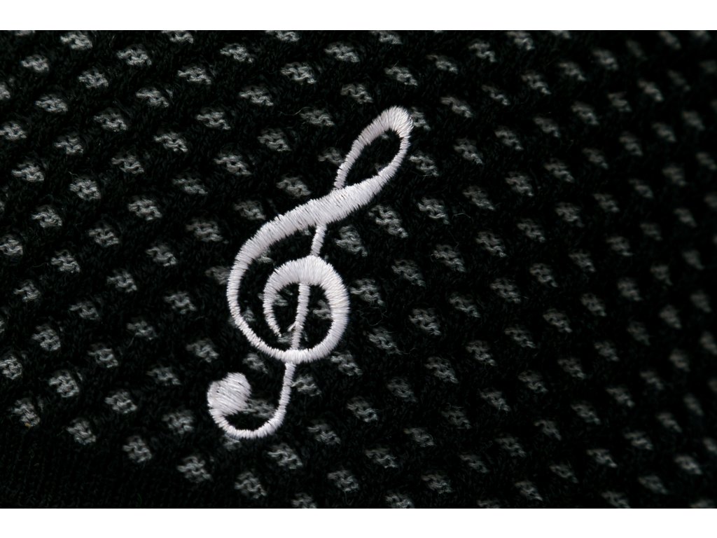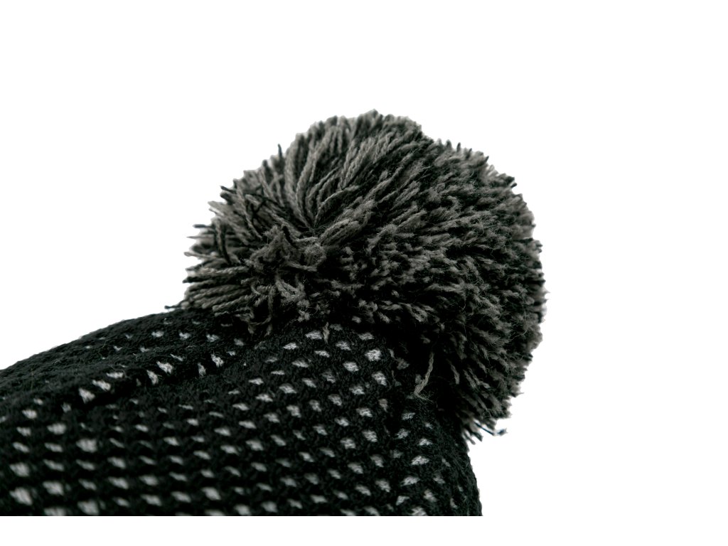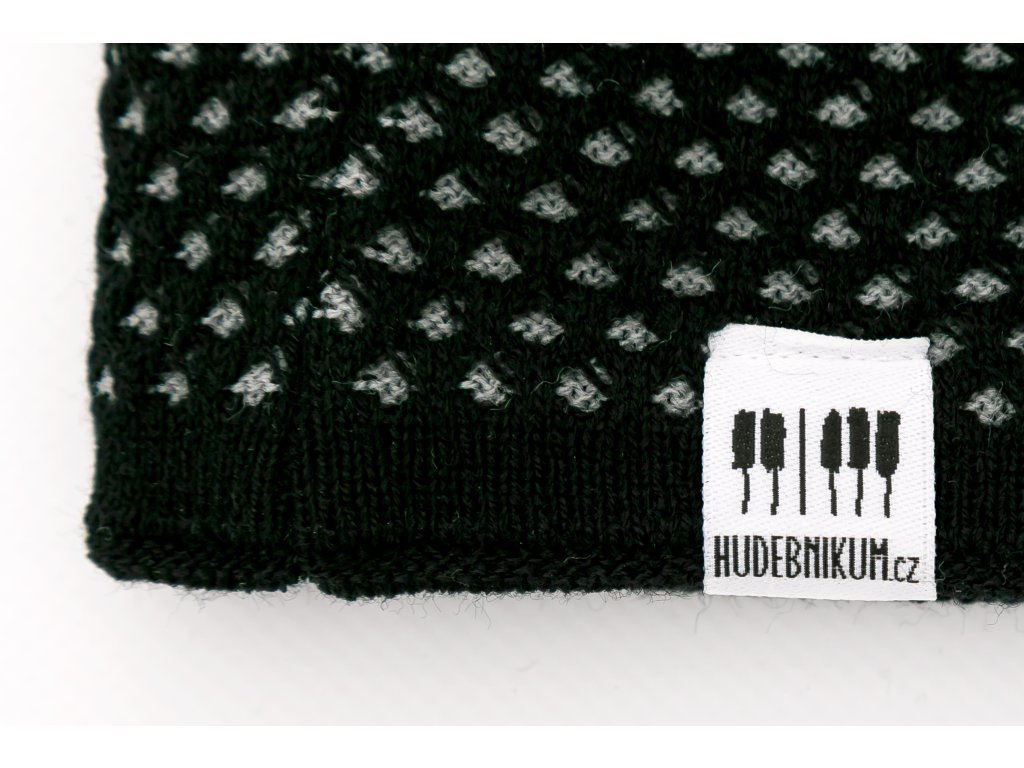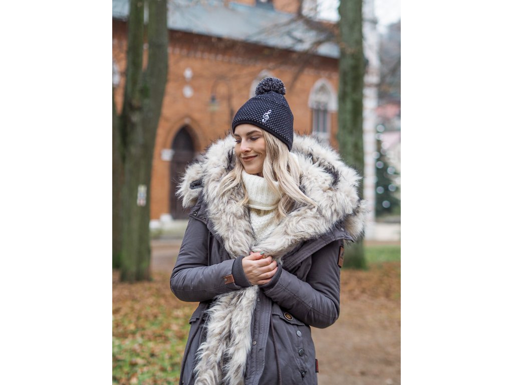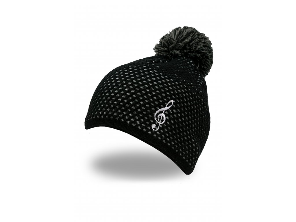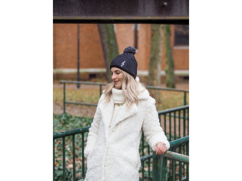 Zateplená čepice s bambulí a houslovým klíčem - černá