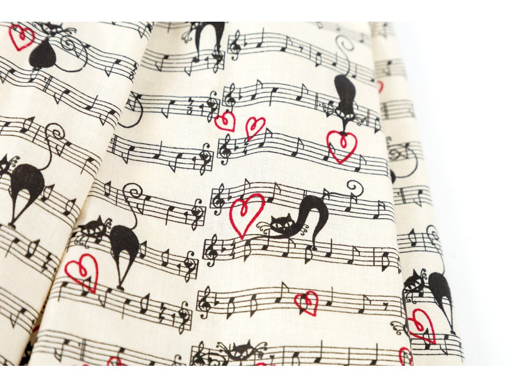 Nastrojte svou malou hudebnici krásnou bavlněnou sukýnkou. Na vystoupení, koncert, oslavu narozenin nebo svatbu..žádné holčičce nesmí chybět alespoň jedna parádní sukně. Kvalitně ušitá sukně má světle béžovou barvu a zlatý potisk partitury.