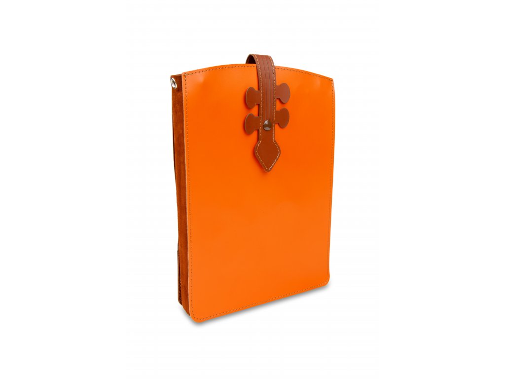 Kabelka je vyrobena z hnědé kůže a oranžové a hnědé eko-kůže.