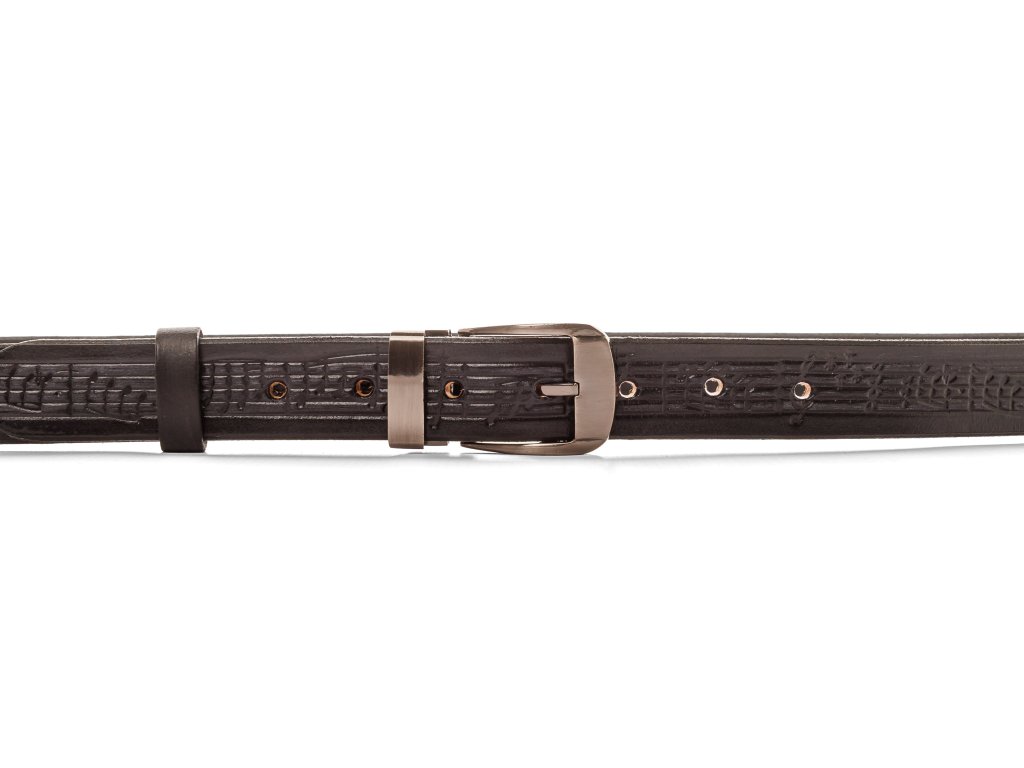 Kožený opasek s partiturou - černý - šířka 2,5 cm, přezka vpravo