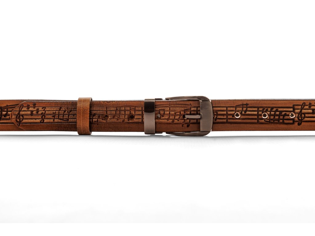 Kožený opasek s partiturou - světle hnědý - šířka 2,5 cm, přezka vpravo