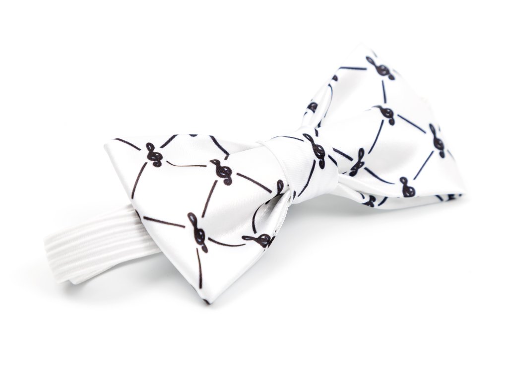 Motýlek s houslovými klíči károvaný - bílý