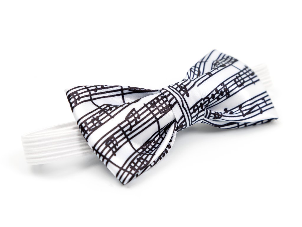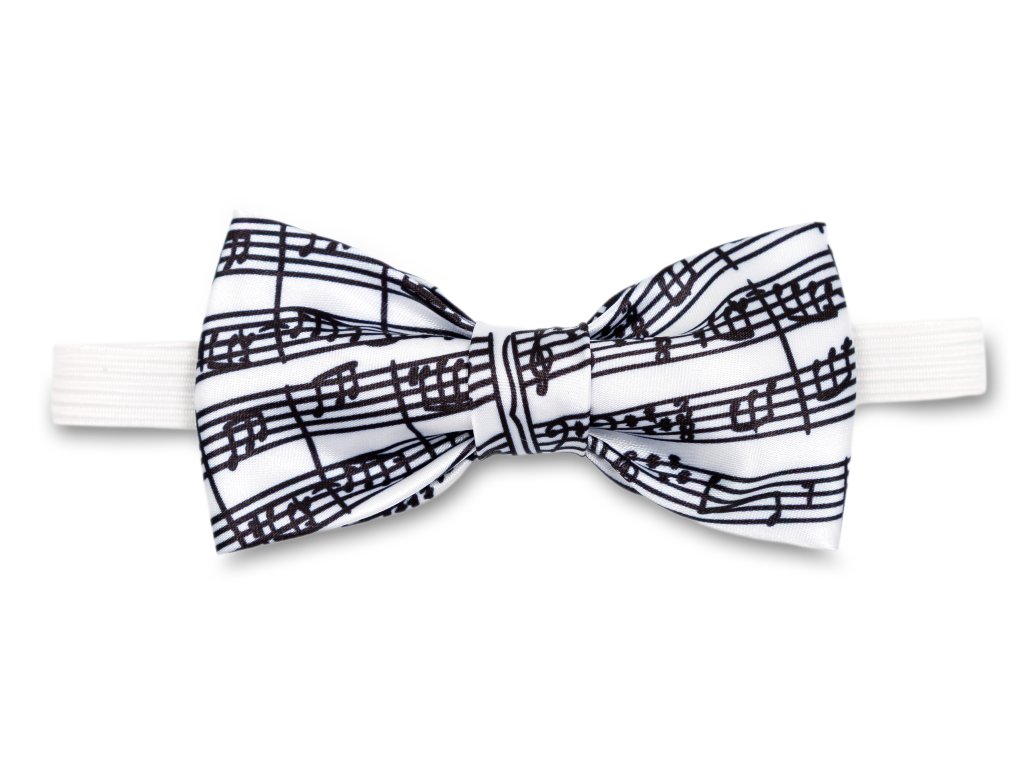 Dodejte svému společenskému obleku svěžest a originalitu s bílým motýlkem zdobeným elegantním motivem partitury. Tento stylový doplněk je ideální pro muzikanty, sbormistry, houslisty, klavíristy i učitele hudby, kteří chtějí vyjádřit svou lásku k hudbě už na první pohled.