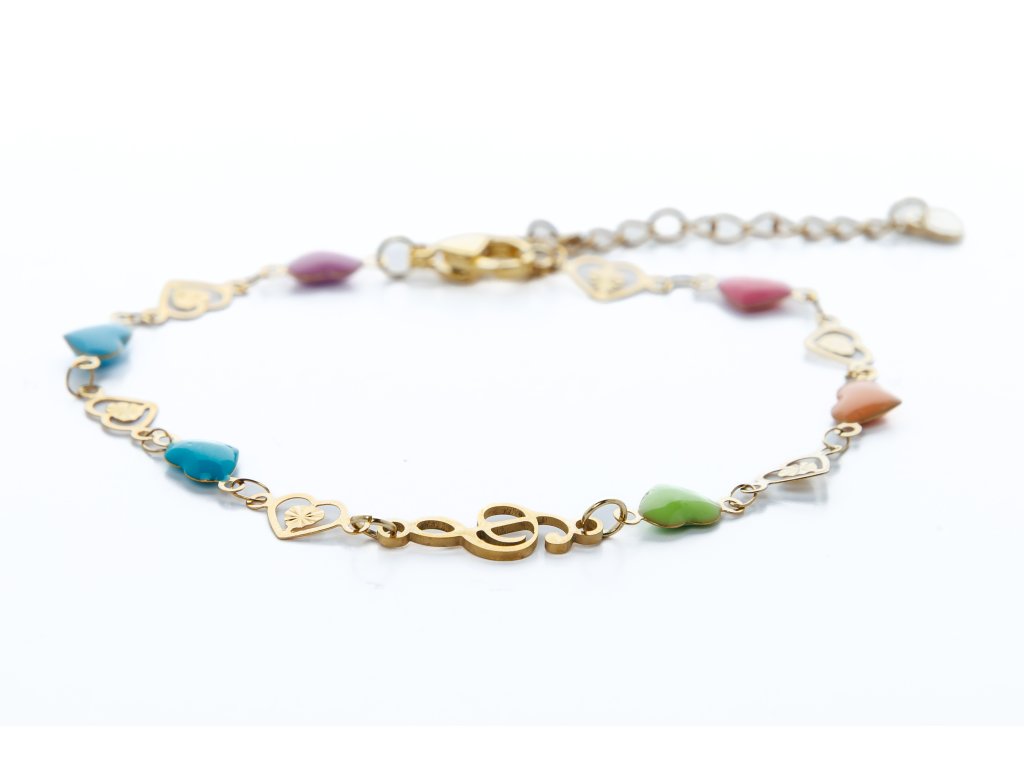 Náramek z barevných srdíček s houslovým klíčem