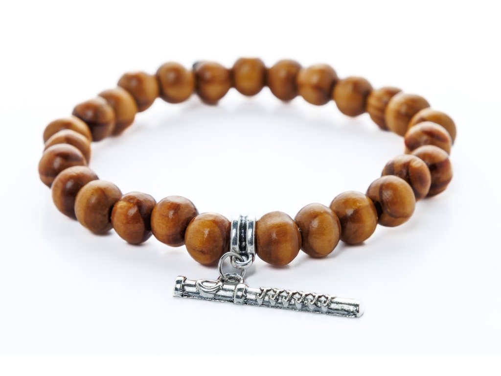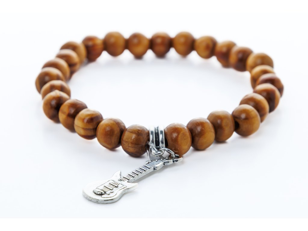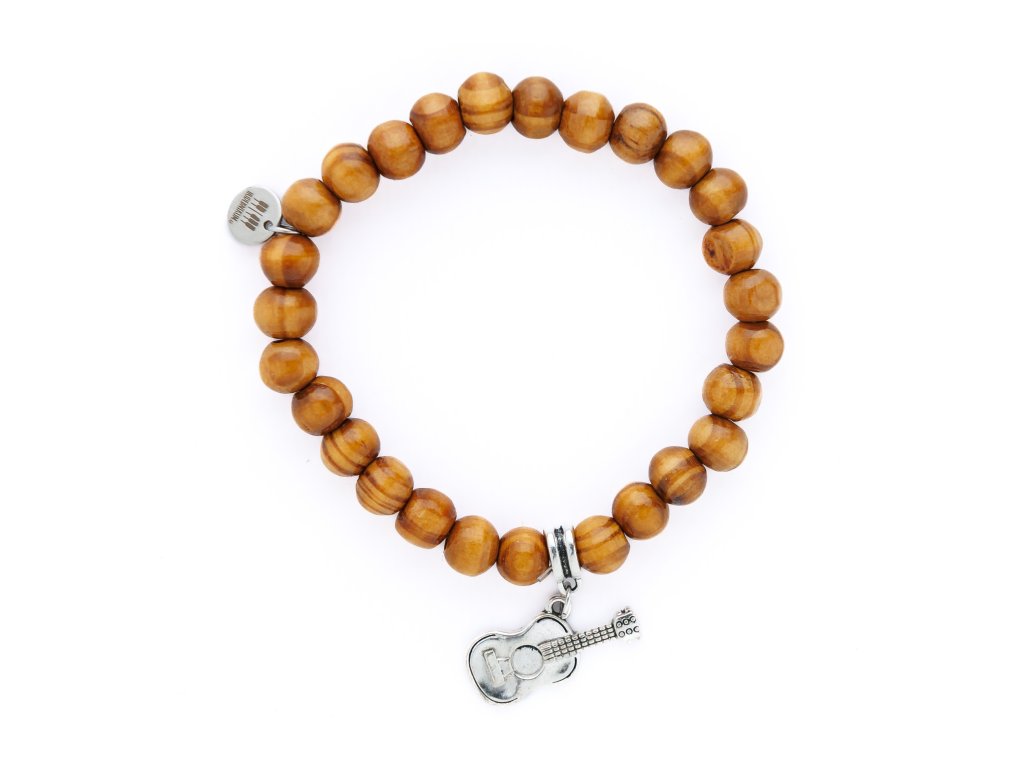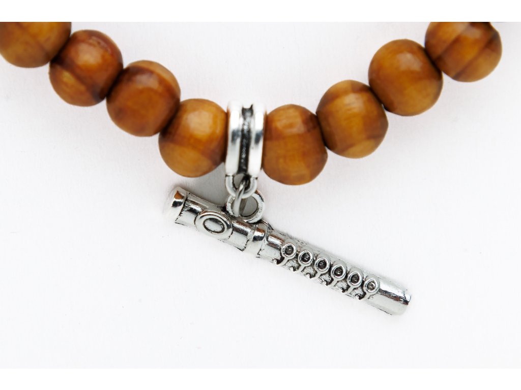 Náramek z dřevěných korálků s hudebním nástrojem