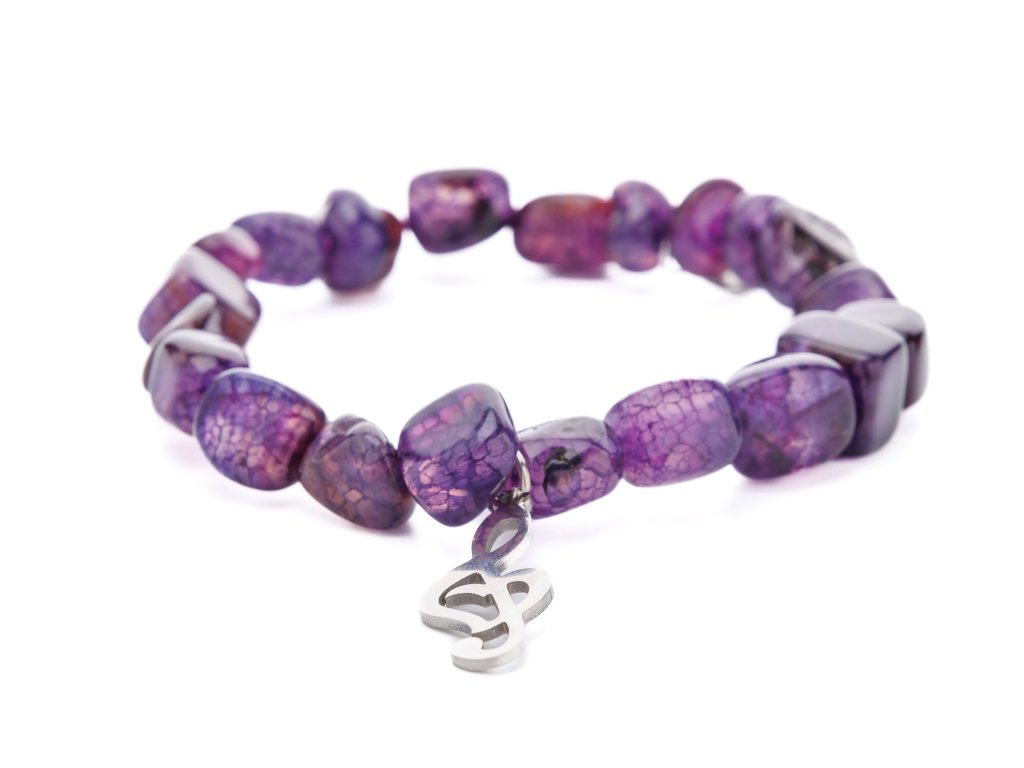 🎁 Originální dárek pro zpěváky, instrumentalisty, skladatele i učitele hudby – náramek, který spojuje krásu hudby s energií fialového achátu.