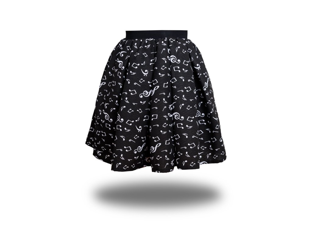 Bavlněná sukně s hudebními symboly - černá