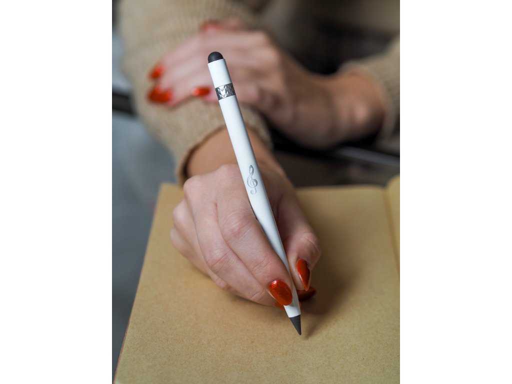 Nekonečná tužka Infinity music s gumou a stylusem - bílá