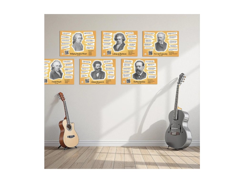 Chcete, aby děti poznaly hudební velikány s nadšením a lehkostí? Tato sada plakátů je přesně to, co hledáte.